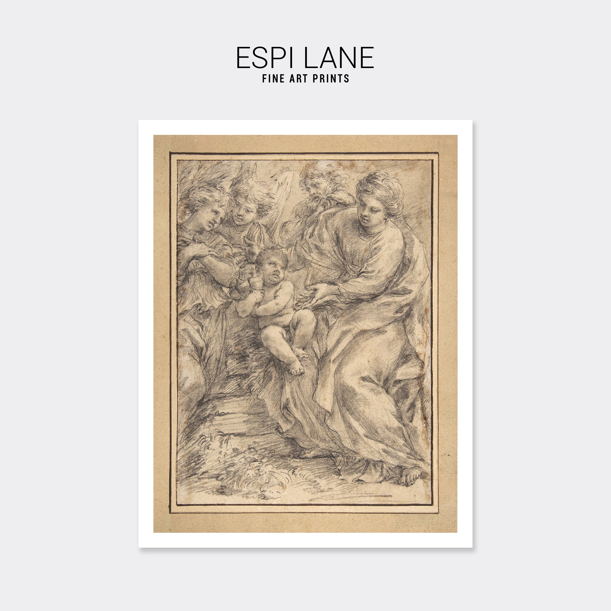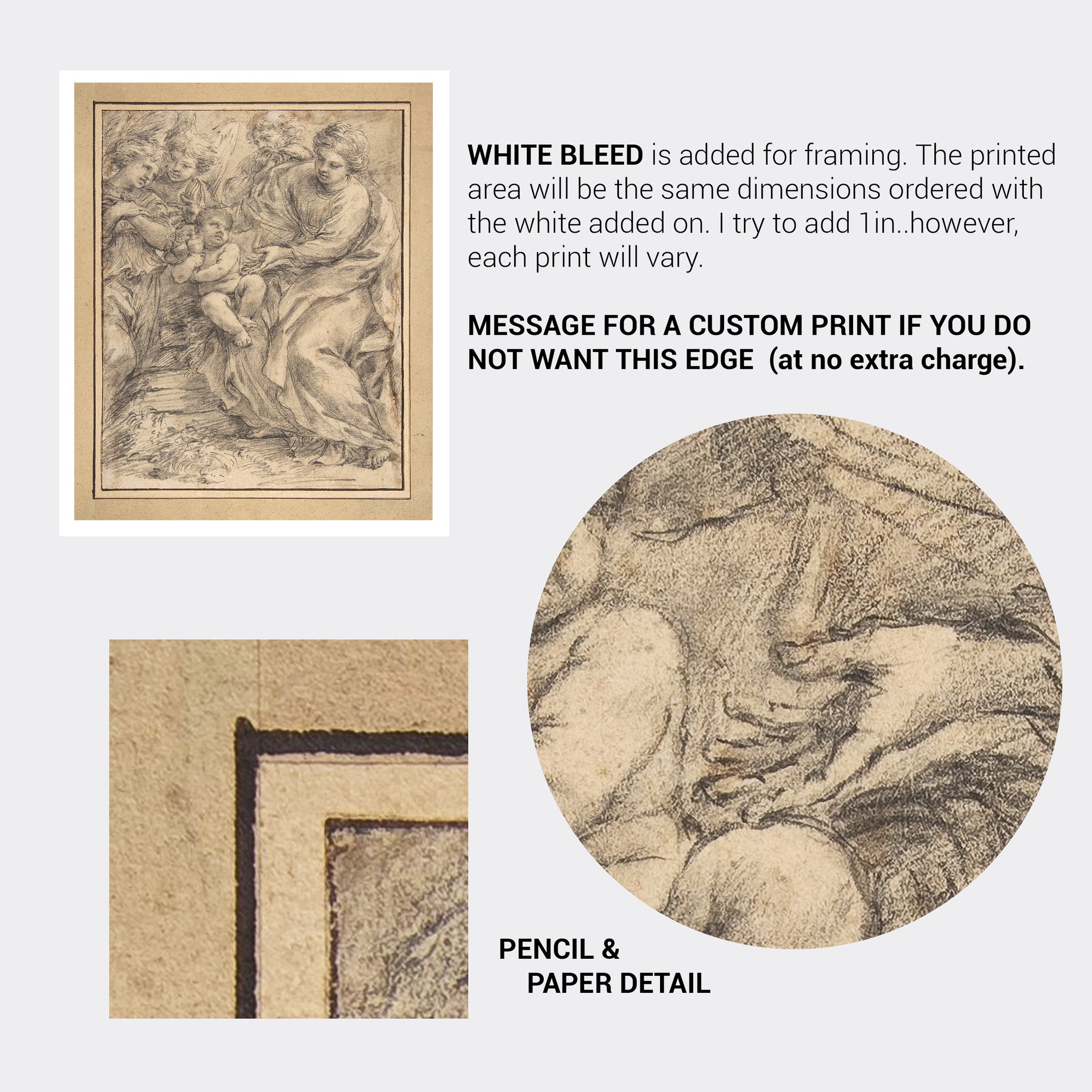 A beautiful art print on matte smooth paper in the size of your choice. An antique sketch of angels and the holy family on off-white/ivory/creme paper. The artist carefully drew borders. This will look great in both minimalist and traditional spaces. I restored and edited this unique edition. Any frame or matting (except what the artist drew/painted) is not included. You will receive one (1) unframed print in your choice of size. It will be printed to order in 3-5 working days.