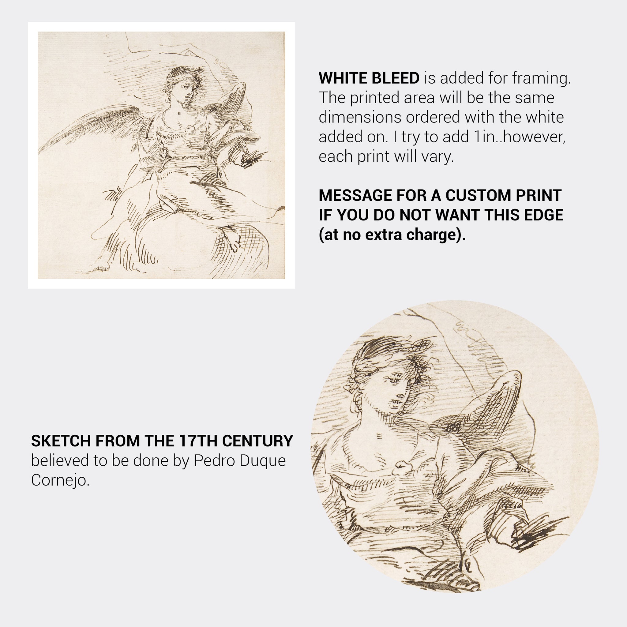 A heavenly art print on Matte Archival Paper in the size of your choice. An antique sketch of an angel in the clouds. It was made with a pen with dark brown ink on off-white/ivory/creme paper. It will look amazing in both minimalist and traditional spaces. I restored and edited this unique edition. You will receive one (1) unframed print in your choice of size. It will be printed to order in 3-5 working days.