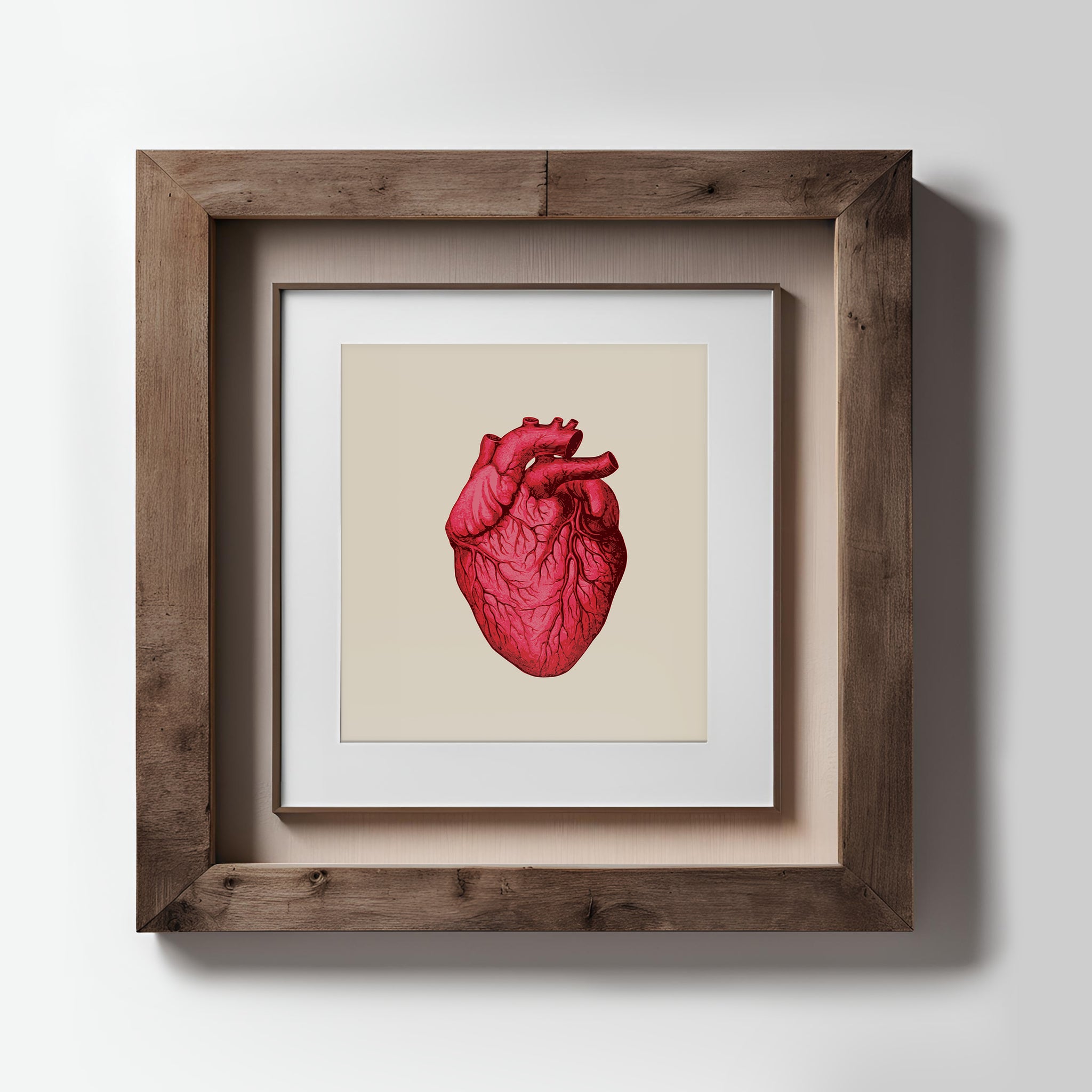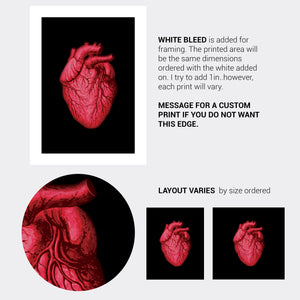 A high-quality wall art print on Matte Archival Paper of a Human Heart. You will receive one (1) unframed print in your choice of size and color. It will be printed to order in 3-5 working days.