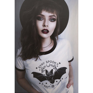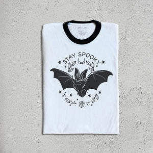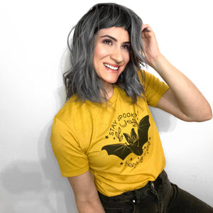 This Stay Spooky Bat Shirt is drawn and designed by me for my line of graphic shirts. Celebrate Halloween every day with this Premium tee made of cotton (solids) and cotton blend (heathers). You can choose between a ringer or standard crew in a unisex fit. The graphic is printed using eco-friendly water-based ink.