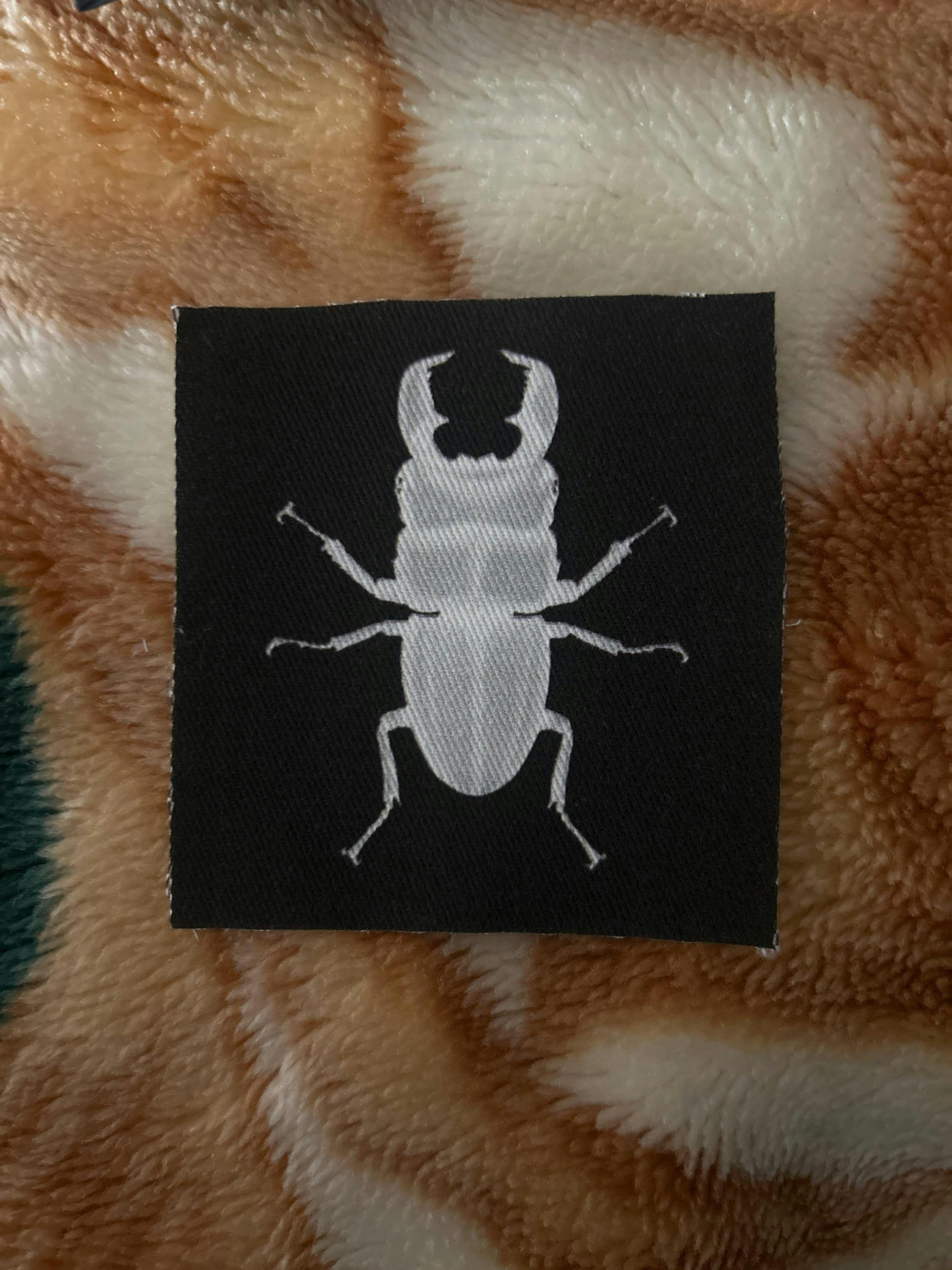 This is a DIY patch for your jacket, vest, shirt, backpack, or bag. It will come square-ish in shape and measure approximately 2.75x3". It features a stag beetle in black and white color.