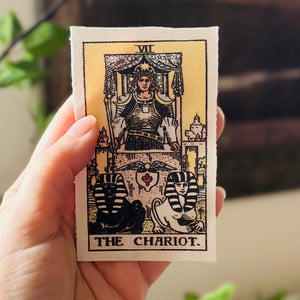 Channel your inner power with the Chariot Tarot sew-on fabric patch, inspired by the classic Rider–Waite tarot deck. Measuring 2.25" x 4", this vibrant patch features The Chariot: a symbol of drive, willpower, success through action, and determination.