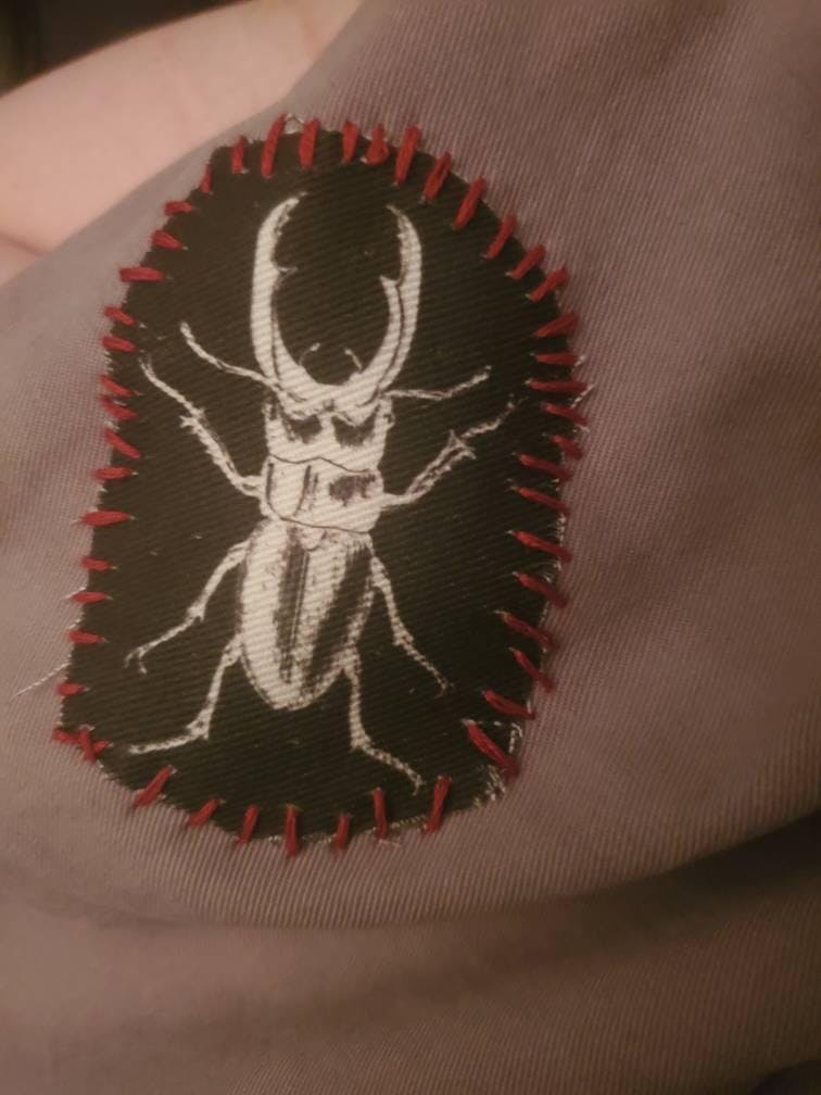 A Stag Beetle patch for your jacket, vest, shirt, backpack, or bag. It will come square-ish in shape. The size will vary as they are cut by hand. Perfect for beetle and taxidermy lovers!