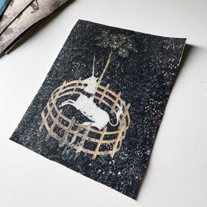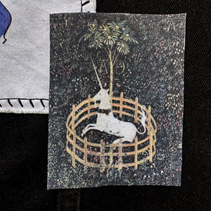 This is a DIY printed patch for your jacket, vest, shirt, backpack, or bag. It measures approximately 3x4" and features the Unicorn Tapestries or the Hunt of the Unicorn, was a tapestry made in the Netherlands around 1495-1505. I converted it into a patch you can sew on your clothing.