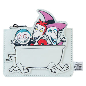 The Loungefly Nightmare Before Christmas Lock Shock Barrel Bathtub Card Holder features Oogie’s three mischievous henchmen. On the front, Lock, Shock, and Barrel set out on a mission as they take a ride in a mechanical bathtub. The back features four slots for holding cards or ID. This item is an officially licensed product.