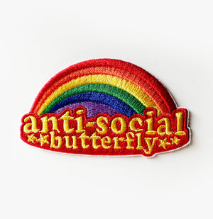 Anti-social embroidered patch with iron-on backing. Easy to install to heat-safe fabrics or items like jackets, backpacks, hats, totes, and more. The original rainbow design was created by EspiLane (me) and is embroidered with high-quality thread. It comes shipped on a backer card with easy-to-follow instructions.