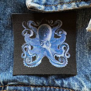 One (1) blue octopus patch for your jacket, vest, shirt, backpack, or bag. The size will vary as it's cut by hand.