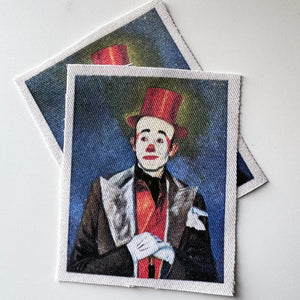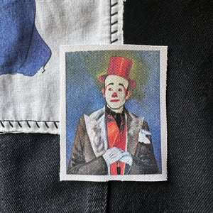 One (1) clown patch for your jacket, vest, shirt, backpack, or bag. The patch will be cut square. The size will vary as it's cut by hand.