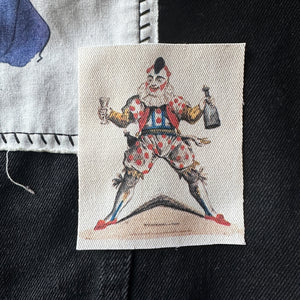 One (1) clown patch for your jacket, vest, shirt, backpack, or bag. The patch will be cut square. The size will vary as it's cut by hand.