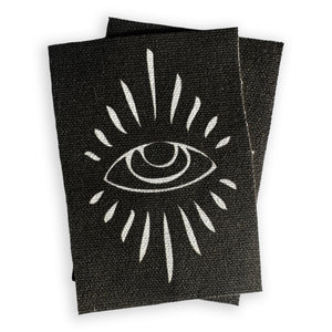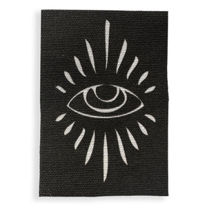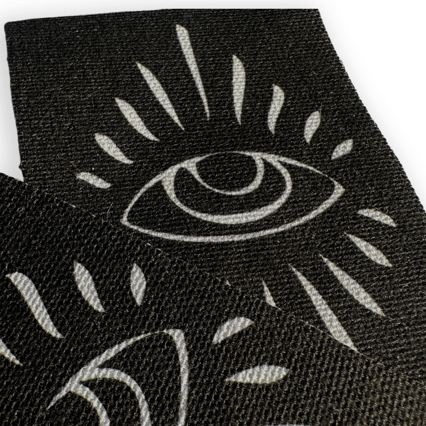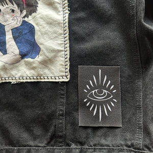 A DIY patch for your jacket, vest, shirt, backpack, or bag. It will come rectangular in shape, and features an evil eye.