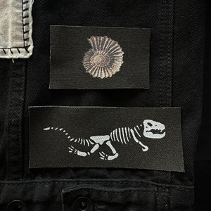 A patch set for your jacket, vest, shirt, backpack, or bag. The two (2) patches will come rectangular in shape. The size will vary as they are cut by hand. Perfect for dinosaur, paleontologist, history, and taxidermy lovers!