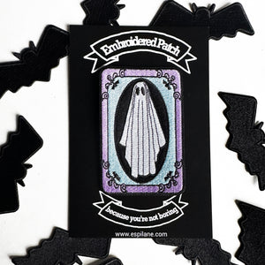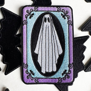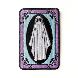 A super cute ghost wearing sheets on an embroidered patch. I use high-quality threads that cover 100% of the twill base. Only the best heat transfer is used so your iron-on will stick to most backpacks, jackets, and more. The ghoulish design was drawn by me and comes mounted on a backer card with easy-to-follow instructions.