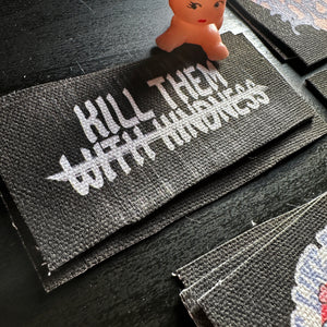 A DIY patch for your jacket, vest, shirt, backpack, or bag. It will come rectangular in shape, and reads: Kill Them With With Kindness. The design has faux vintage washing on it for a worn look. While I don't condone any type of violence I abhor people having to be nice to make others more comfortable. I also feel like anyone who tells you to "be nice" is someone who looks down on you or feels you owe them in some way.