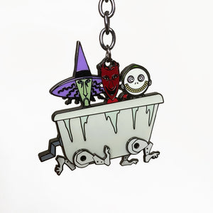 Prepare for a scare! Oogie's Boys from The Nightmare Before Christmas, Lock, Shock, and Barrel are on the move in their tub! This keychain has moveable legs. This is an officially licensed product made by Loungefly. This item ships in 1-3 days.