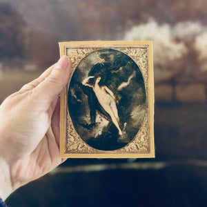 Embrace the mystery of the night with this Nyx, Night Goddess sew-on fabric patch, featuring Gustave Moreau’s ethereal painting of the Greek goddess of darkness and dreams. Measuring 3.5" x 4.25", this patch captures celestial elegance and gothic symbolism in a wearable piece of fine art.
