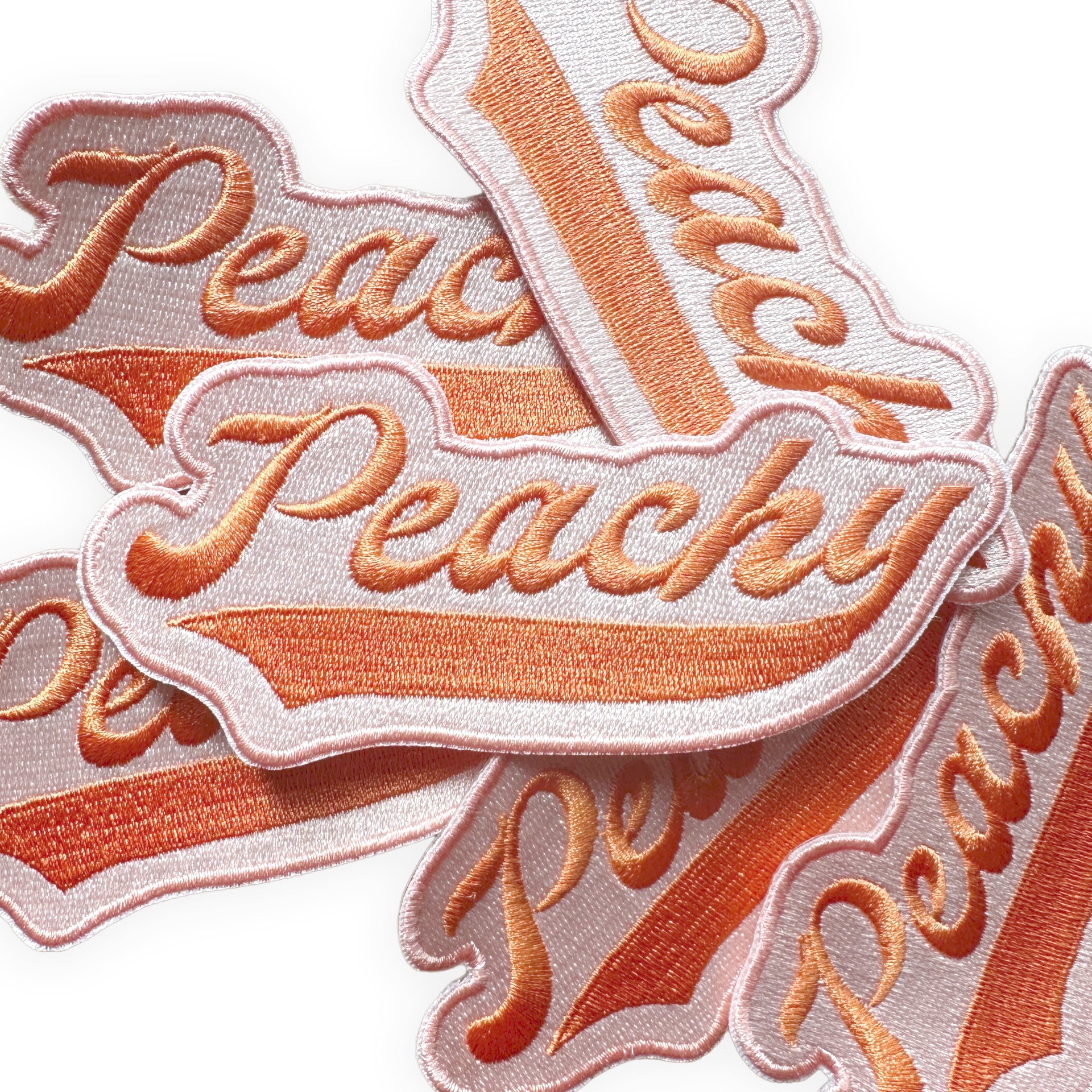 Peachy Iron On Embroidered Patch with Iron-On backing. This design is made with high-quality thread and twill backing that sticks perfectly to most garments, jacket shirts, bags, or hats. Comes mounted on a backer card with instructions.