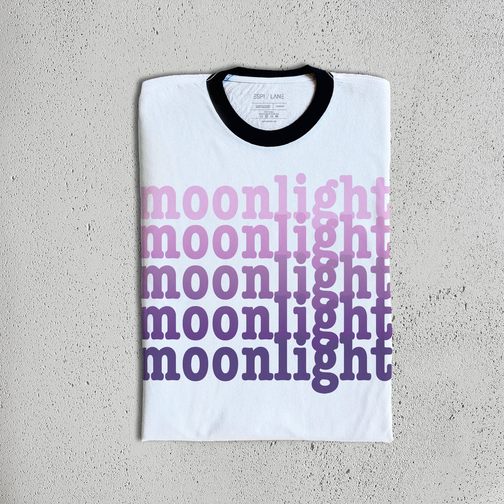 Moonlight Graphic T-Shirt printed using eco-friendly water-based ink. You can choose between a ringer and standard crew in a unisex fit tee. Unisex t-shirts run big on her/them.