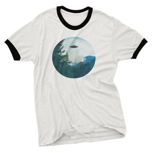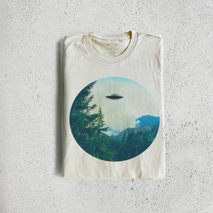 UFO Sighting Graphic Tee printed using eco-friendly water-based ink. You can choose between a ringer and standard crew in a unisex or slim-fit. All shirts are made of 100% premium ringspun cotton.