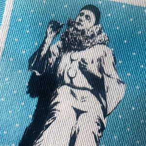A mime patch for your jacket, vest, shirt, backpack, or bag. The mime is smelling a flower and is in front of a polka-dot background. size will vary as they are cut by hand. Perfect for clown lovers!