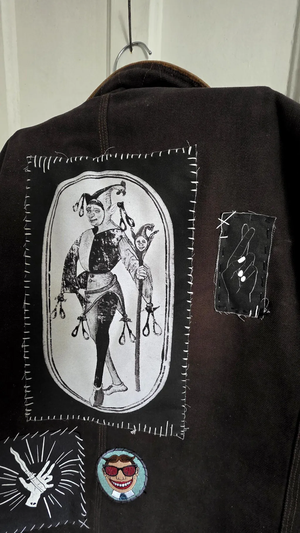 A large Jester patch for your jacket, vest, shirt, backpack, or bag. It will measure approximately 8x13". I use white sturdy canvas cotton. This item is hand-cut so size can vary slightly. Perfect for clown lovers!