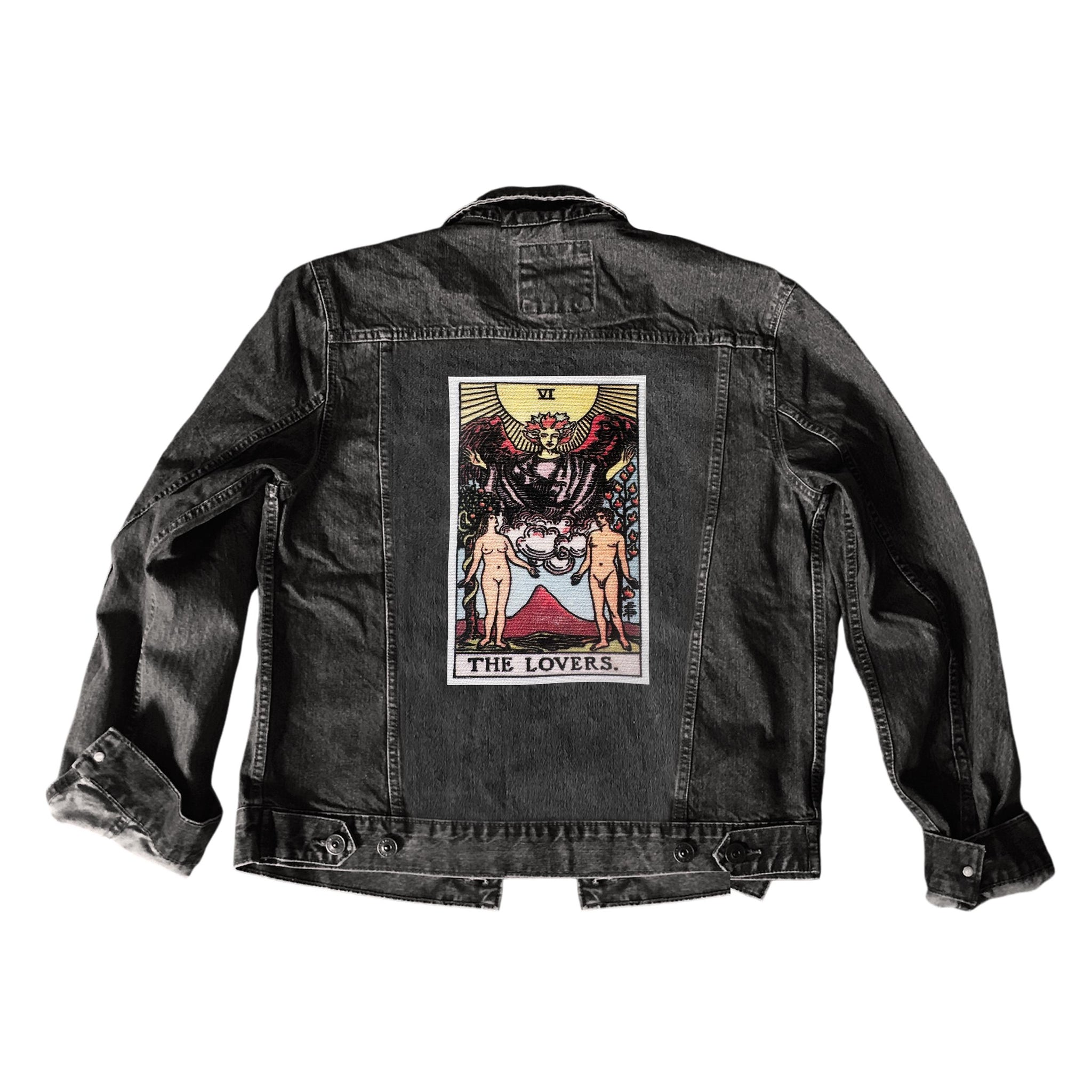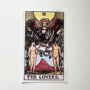 This is a large patch for your jacket, vest, shirt, backpack, or bag. It shows the Lovers card in the Rider-Waite tarot deck. It will measure approximately 7x11.5". I use sturdy canvas cotton in white or natural (unbleached) color. This item is hand-cut, so there may be slight variations to size.