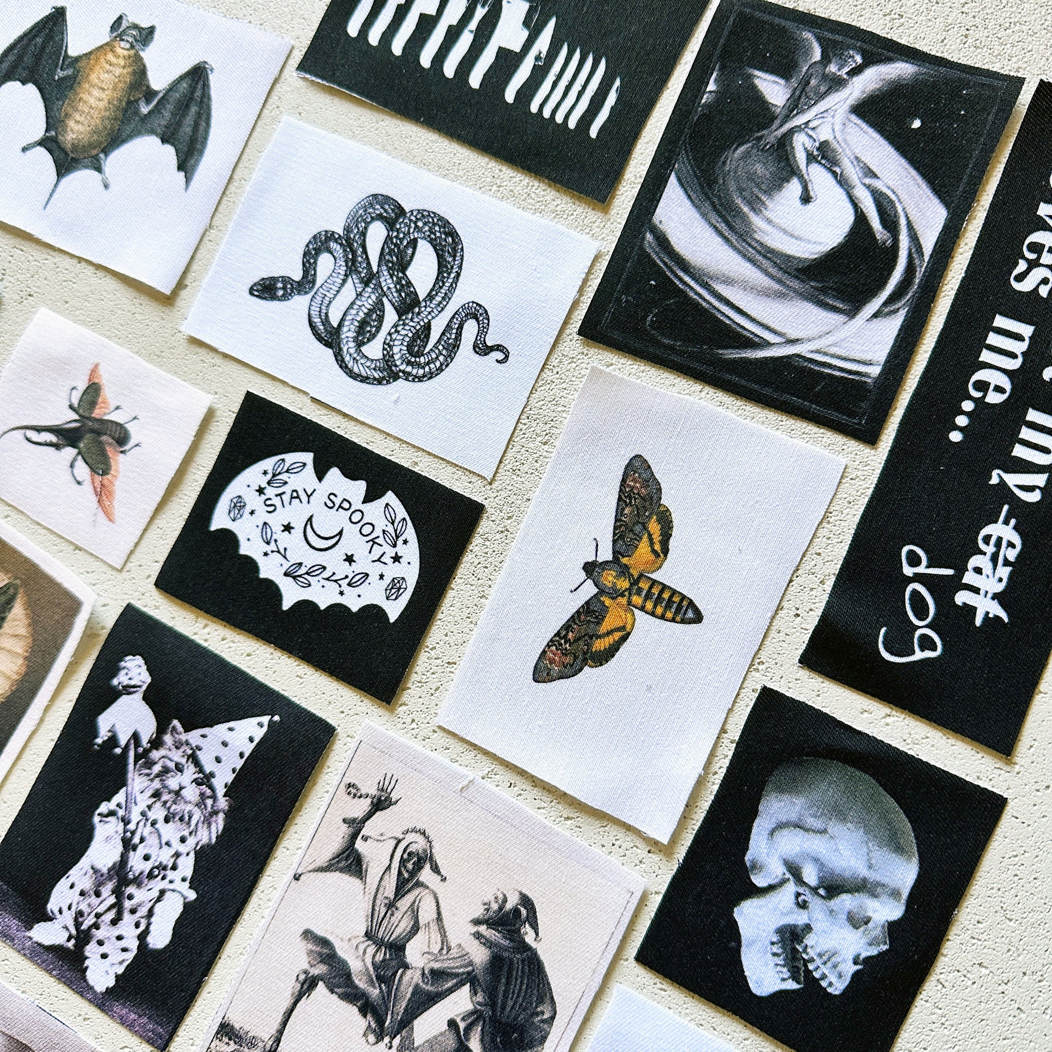 This is a full sheet of DIY patches for your jacket, vest, shirt, backpack, or bag. Each sheet has the 23 patches shown (no mysteries or surprises). This is a collection of some best sellers, and some new designs not yet released.