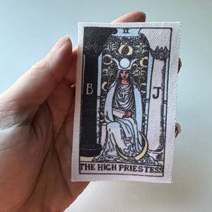 Channel your intuition and inner magic with this High Priestess tarot patch, featuring art from the classic Rider–Waite deck. Measuring 2.25x4 inches, this high-quality printed fabric patch captures the mystery and symbolism of the High Priestess — the guardian of secrets, dreams, and hidden knowledge.